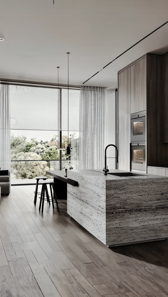 As the morning light filters through the window lattices, awakening the texture of the stone, the story of home flows through every detail.